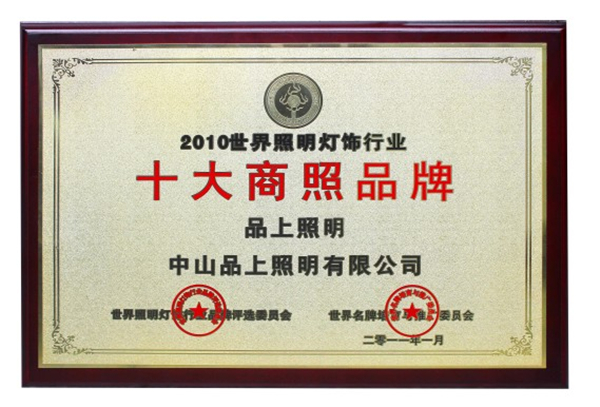 此次風(fēng)云榜評(píng)選活動(dòng)包括“十大風(fēng)云品牌”“十大家居品牌”“十大新銳品牌”等十余項(xiàng)評(píng)選項(xiàng)目。品上照明應(yīng)邀參加此次頒獎(jiǎng)晚會(huì),并且憑借多年來(lái)在商業(yè)照明領(lǐng)域的發(fā)展和成果,獲得“2010年世界照明燈飾行業(yè)十大商照品牌”榮譽(yù)稱號(hào)。